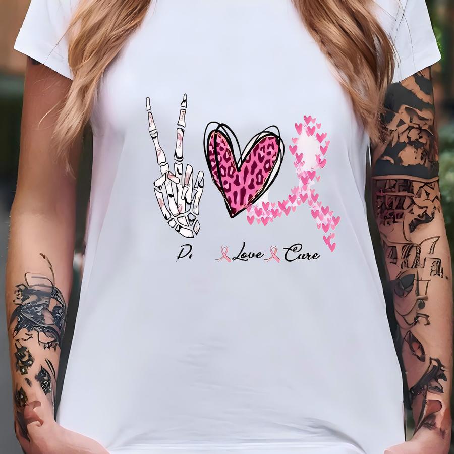 Peace Love Cure Breast Cancer Awareness Hoodie – Breast Cancer Survivor Gift - Breast Cancer Awareness Shirt T-shirt