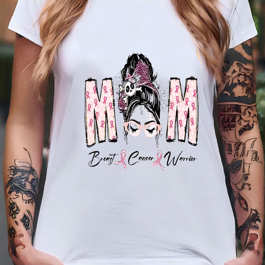 Mom Breast Cancer Warrior Hoodie – Pink Ribbon Awareness Tee, Strong Mom Graphic Shirt, Breast Cancer Support Gift, Mom Cancer Survivor Tee T-shirt