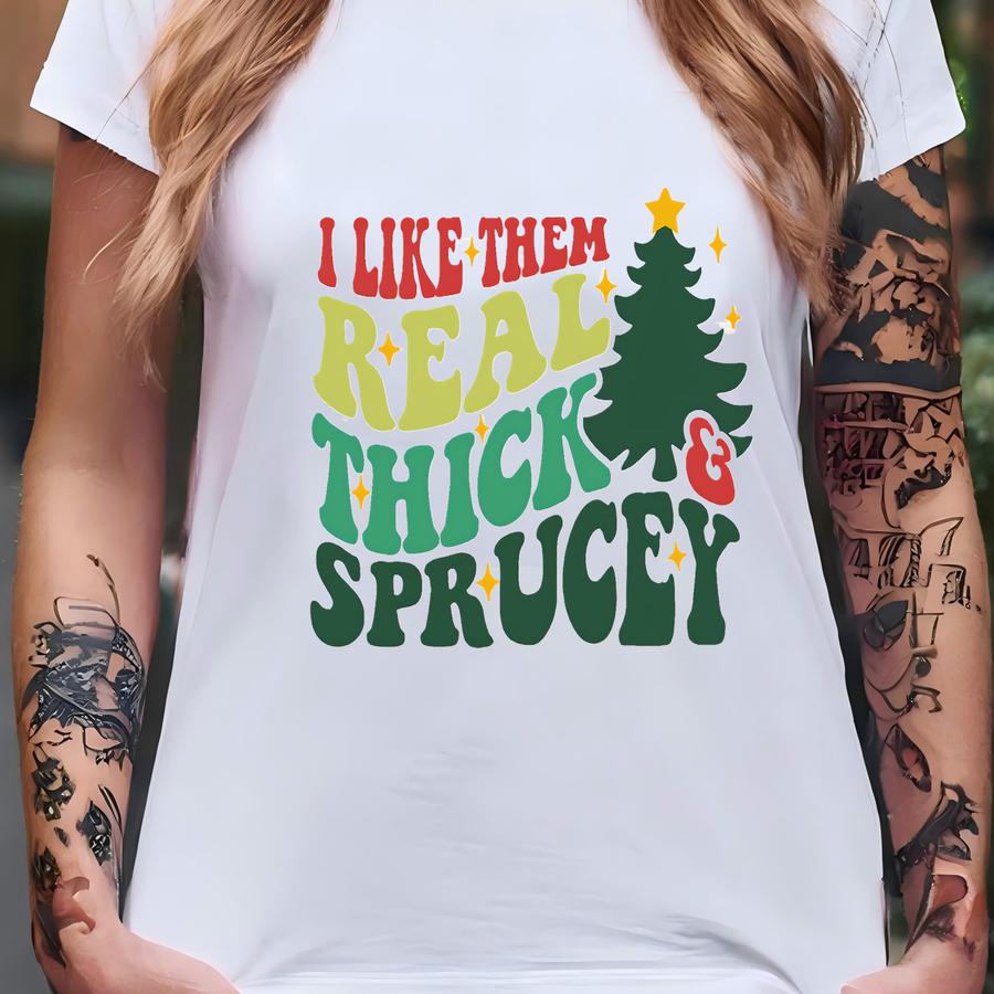 I Like Them Real Thick And Sprucey Sweatshirt, Funny Holiday Crewneck,christmas Holiday Shirt, Funny Christmas Sweater,xmas Sweater T-shirt
