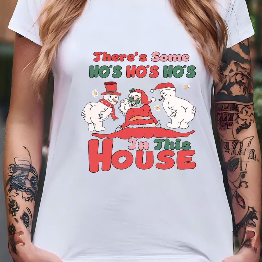 Funny Santa Sweatshirthirt, Ugly Christmas Shirt,theres Some Ho Ho Hos In This House,twerking Santa Shirt,retro Santa Sweater,christmas Gift T-shirt