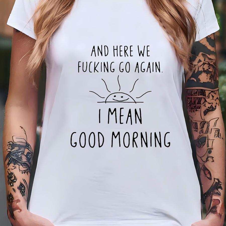 Here We Go Ing Again I Mean Good Morning Shirt, Good Morning Sunshine , Funny Graphic Tee, Funny Meme Shirt, Weirdcore Clothing T-shirt