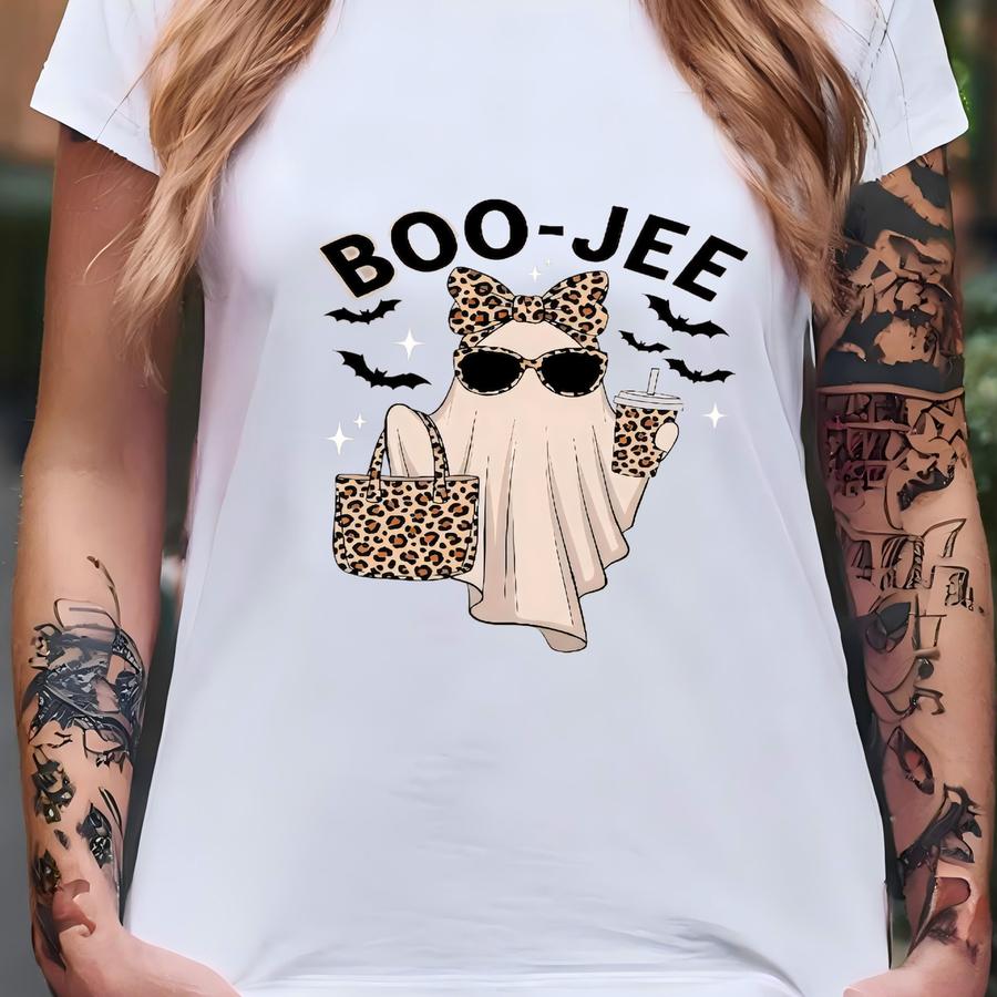 Halloween Sweatshirt, Boo Jee Leopard Print Ghost Tshirt, Halloween Coffee Ghost Shirt, Boujee Ghost Hoodie,spooky Season Tee,coquette Ghost T-shirt