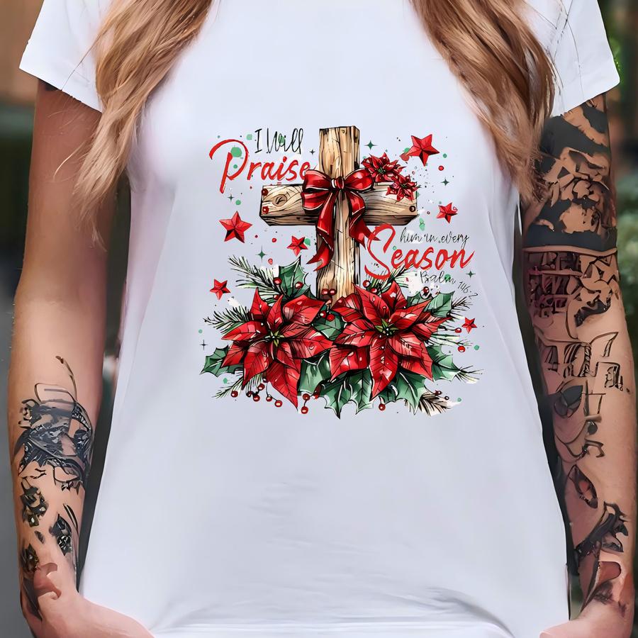 Jesus Coquette Christmas Sweatshirt, I Will Praise Him In Every Season Tshirt, Bible Verse Hoodie,faith Christian,psalm 146:2 Christian Fall T-shirt