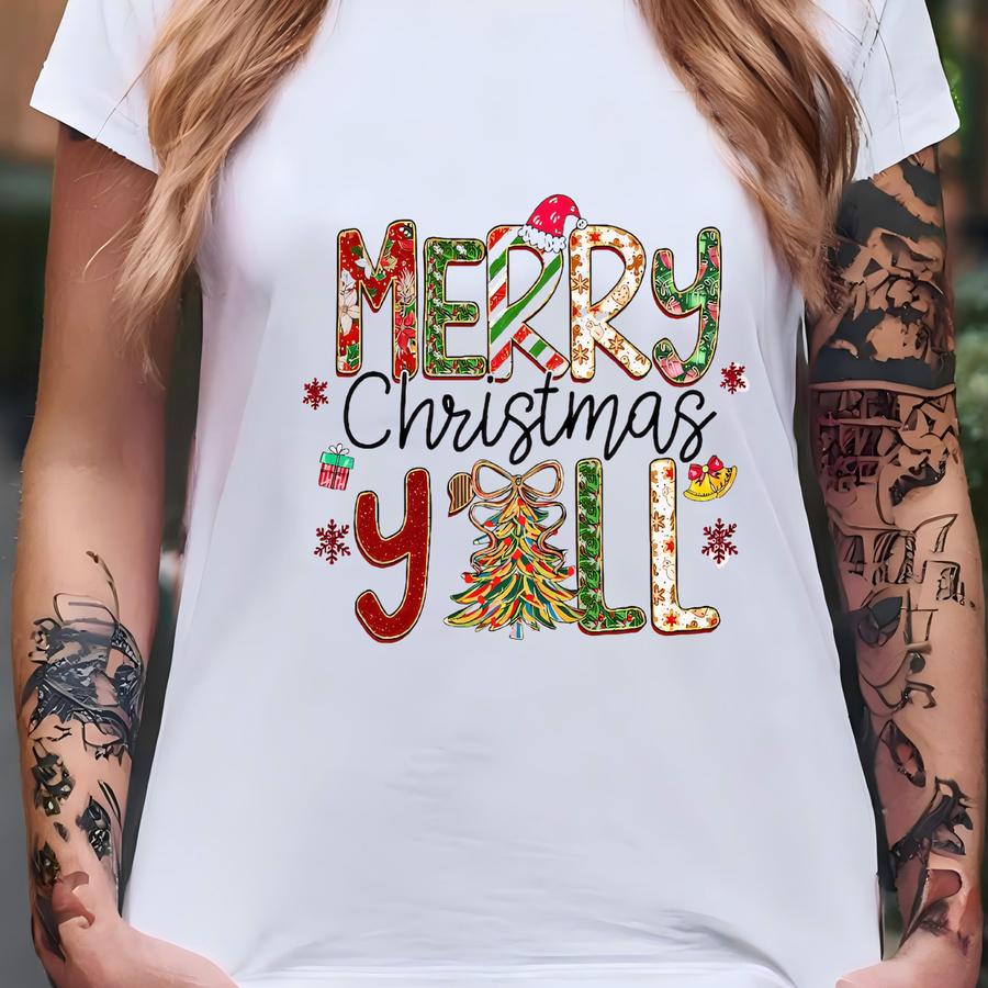 Merry Christmas Y'all Sweatshirt, Merry And Bright Tshirt, Merry Christmas Hoodie, Xmas Shirts, Coquette Cozy Winter Tee, Family Matching T-shirt