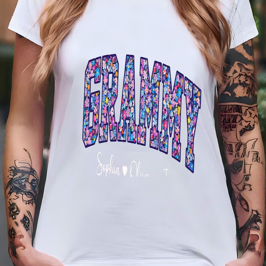 Personalized Grammy Shirt, Floral Grammy Hoodie With Grandkids, Cute Grammy Gift, Mother's Day Gifts, Gifts For Grandparents T-shirt