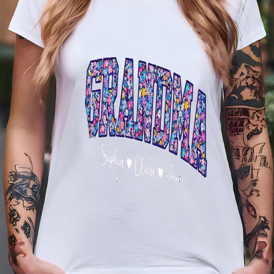 Personalized Grandma Sweatshirt, Floral Grandma Sweatshirt With Grandkids, Cute Grandma Gift, Mother's Day Gifts, Gifts For Grandparents T-shirt