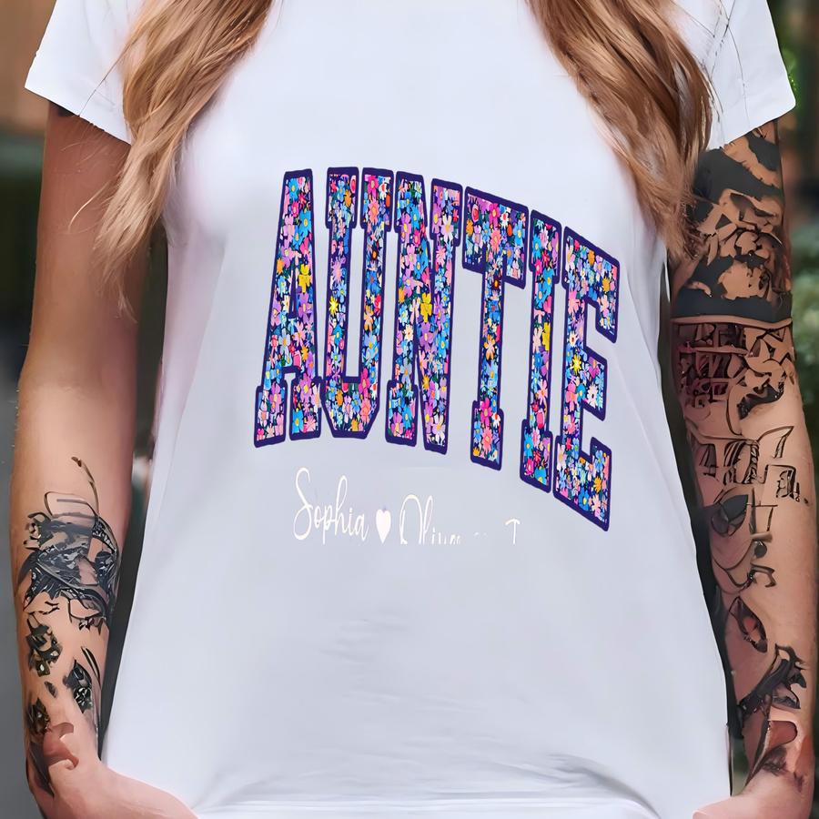 Personalized Auntie Shirt, Flora Auntie, New Aunt Outfit, Pregnancy Announcement For Aunt, Gift For Aunt, Aunt Birthday Gifts T-shirt