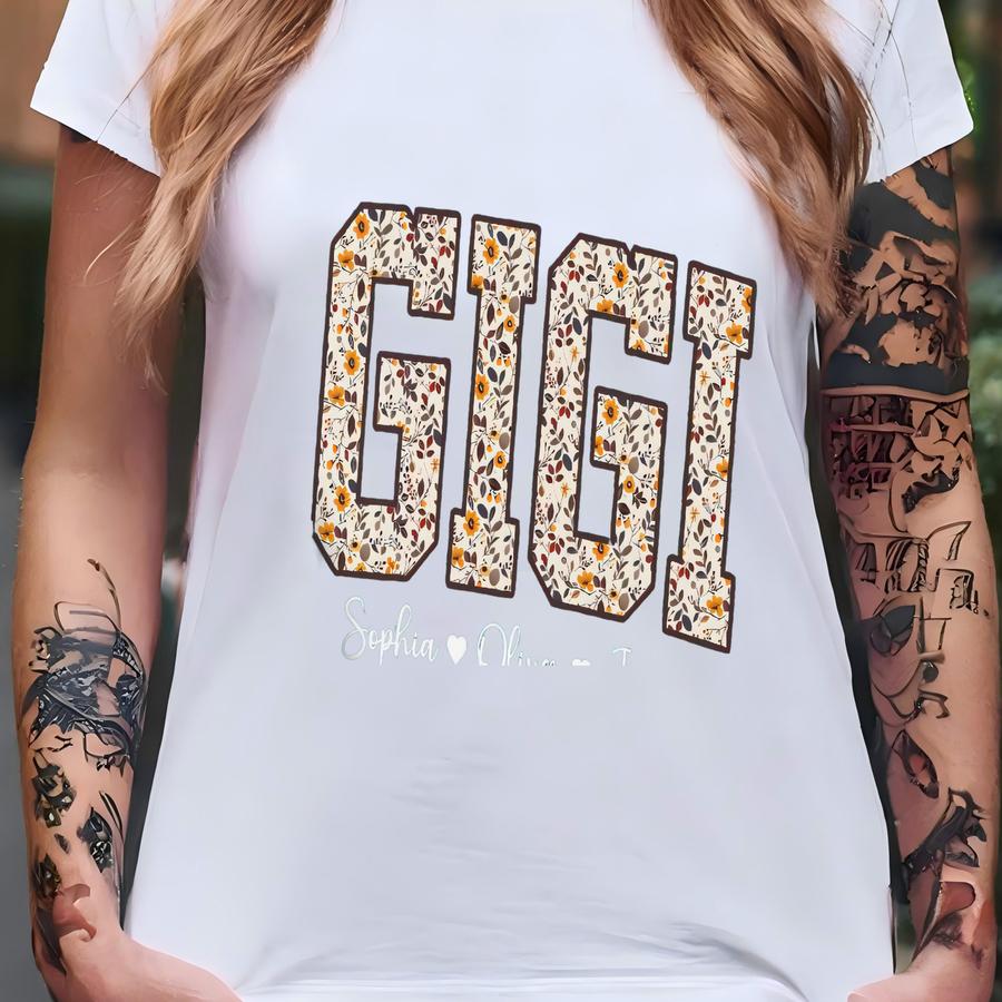 Personalized Gigi Sweatshirt With Grandkids Names, Boho Floral Gigi Sweater, Gift For Gigi, Grammy Gift, Mothers Day Gift, New Grandma Gift T-shirt