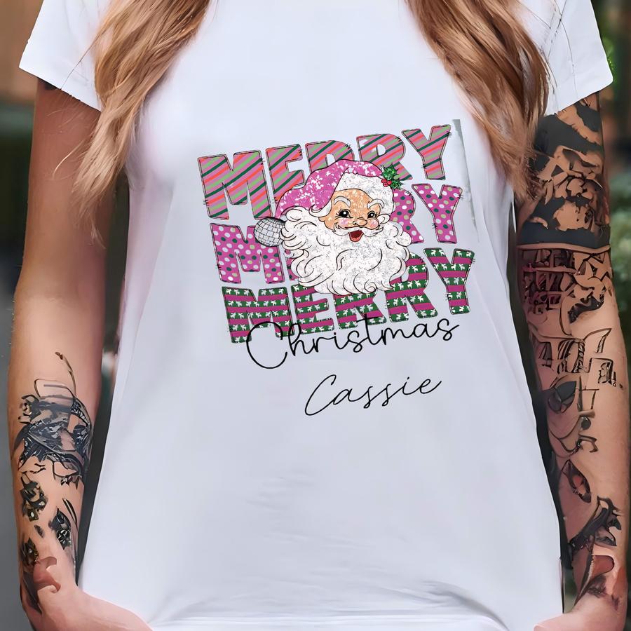 Personalized Merry Christmas Tumbler, Santa Claus Cup, Holiday Drinkware, Christmas Gift For Her, Winter Season Cup, Custom Name Tumbler T-shirt
