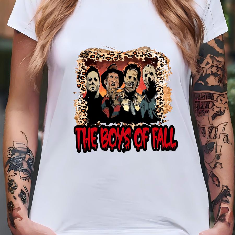 Horror Movie Killers Shirt, The Boys Of Fall Tee, Halloween Spooky Season Top, Scary Movie Fan Apparel, Fall Festival Shirt, Leopard Print T-shirt