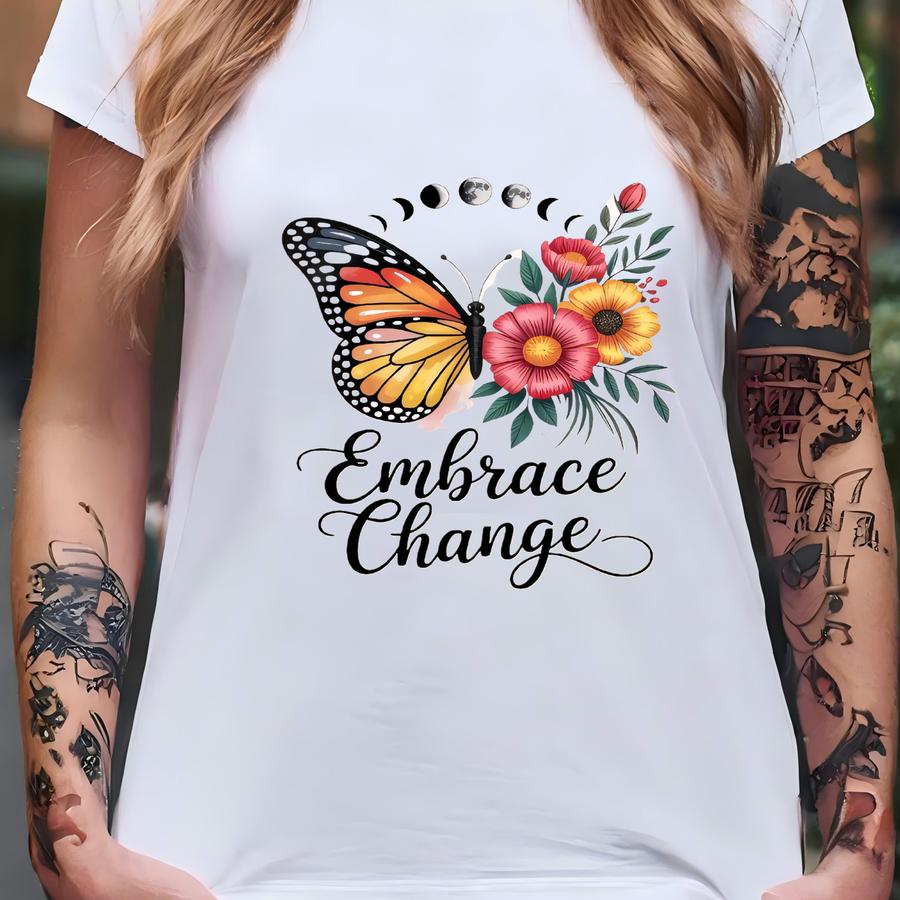 Embrace Change Butterfly Shirt, Moon Phase Floral Tee, Positive Affirmation Top, Inspirational Women's Apparel, Growth Mindset Clothing T-shirt