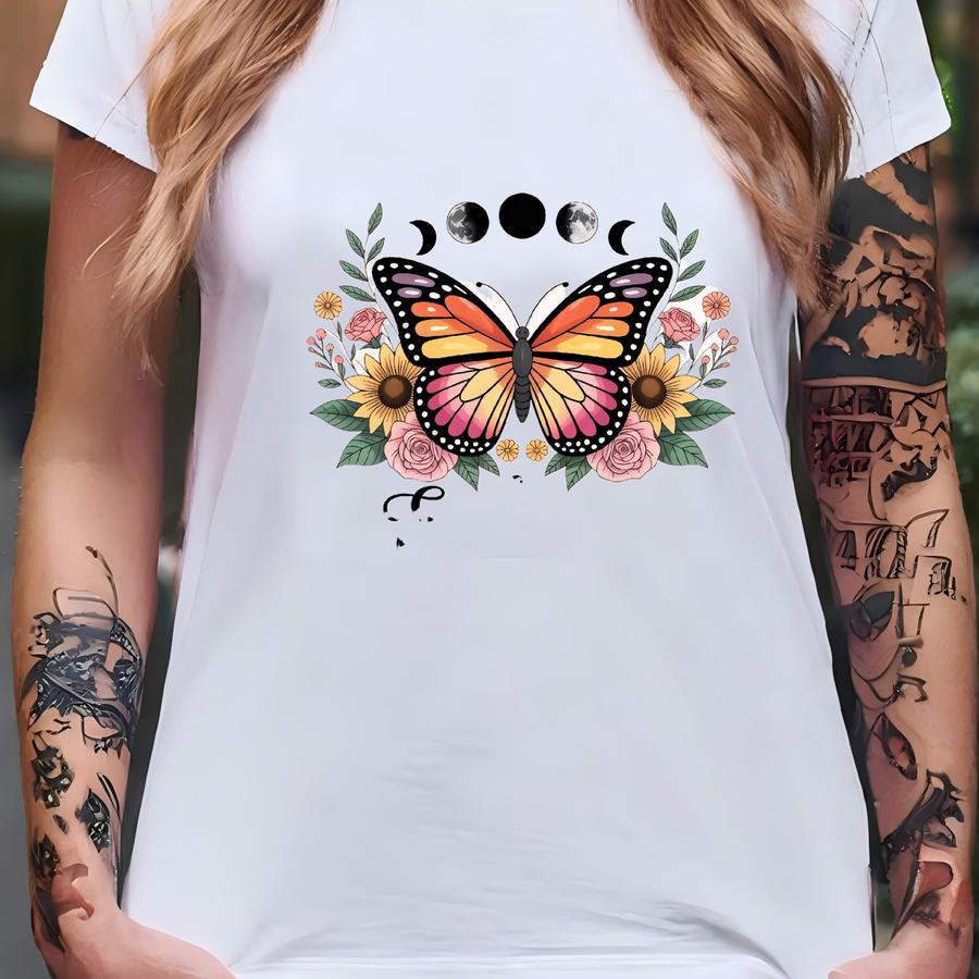 Embrace Change Butterfly Shirt, Moon Phase Floral Tee, Positive Vibes Hoodie, Inspirational Saying Top, Nature Lover Gift T-shirt