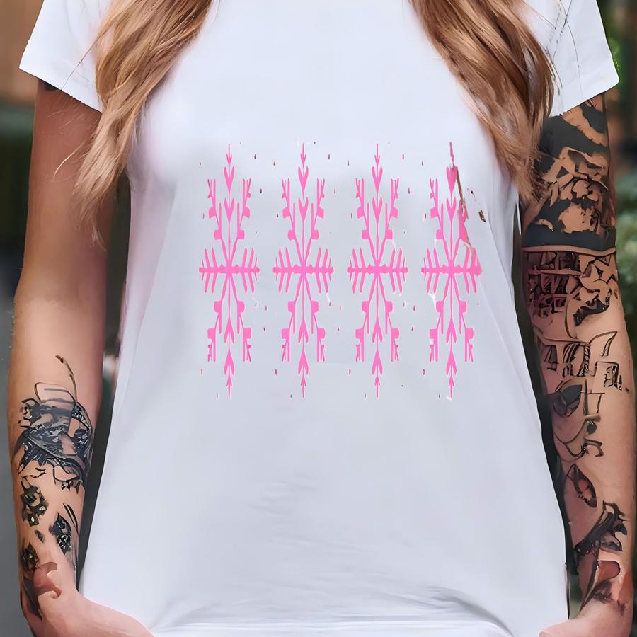 Pink Snowflake Christmas Sweatshirt, Pink Christmas Sweater, Cute Snowflake Shirt, Mom Gift, Gift For Her, Winter Sweatshirt, Cozy Sweater T-shirt