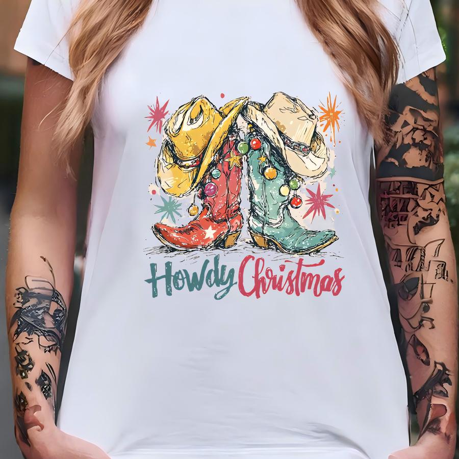 Howdy Christmas Boots Shirt, Western Christmas Shirt, Christmas Cowgirl Shirt, Cowboy Christmas Shirt, Howdy Xmas Boots Tee, Xmas Party Gift T-shirt