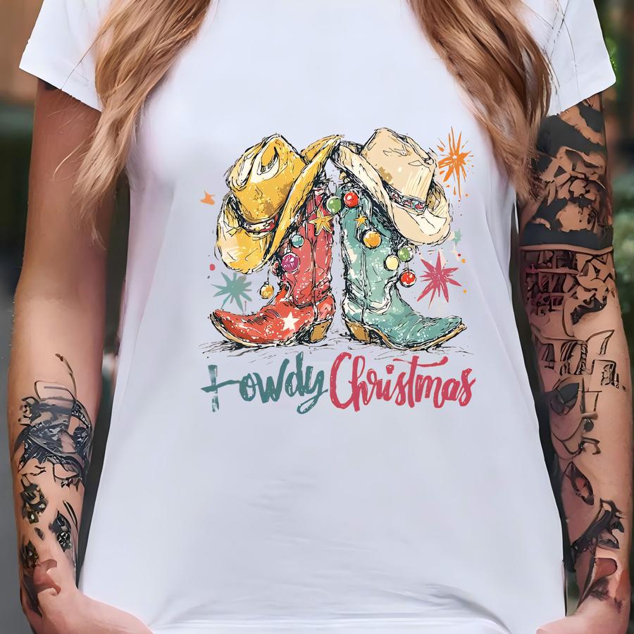 Howdy Christmas Sweatshirt, Cowgirl Boots Christmas Sweater, Western Christmas Sweatshirt, Howdy Holidays Sweatshirt, Christmas Women Hoodie T-shirt