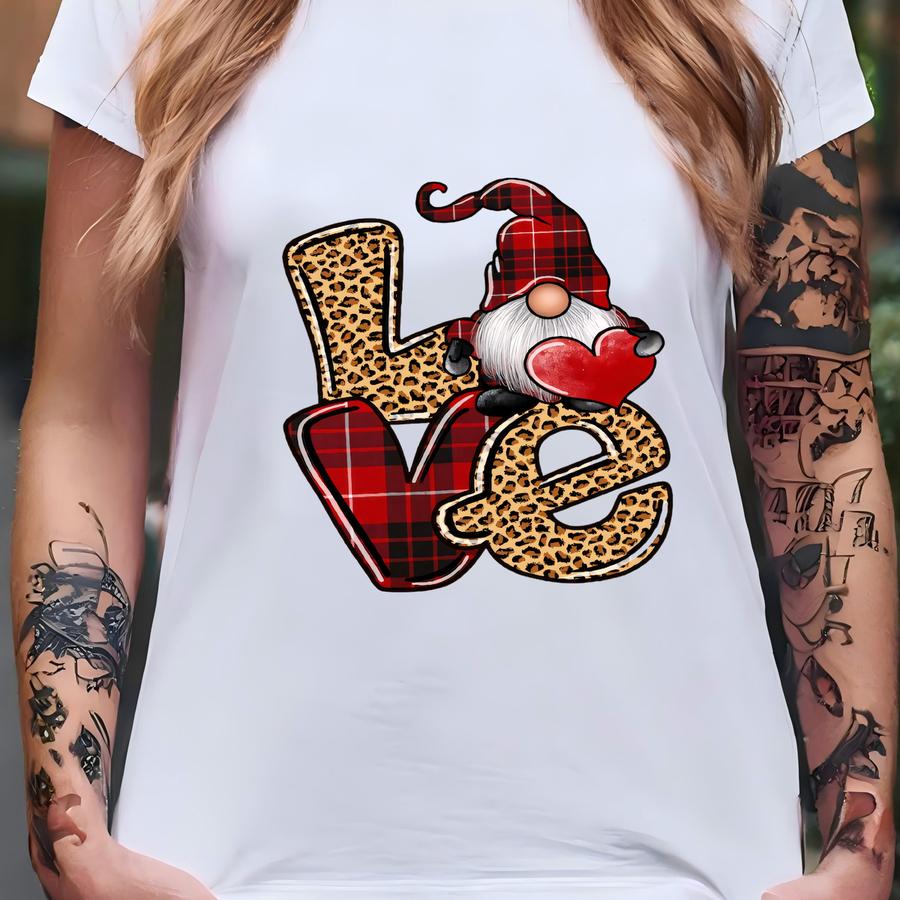 Gnome Love Sweatshirt, Love Christmas Sweatshirt, Christmas Gnome Sweater, Couple Sweatshirt, Buffalo Plaid Gnome, Christmas Women Gift T-shirt