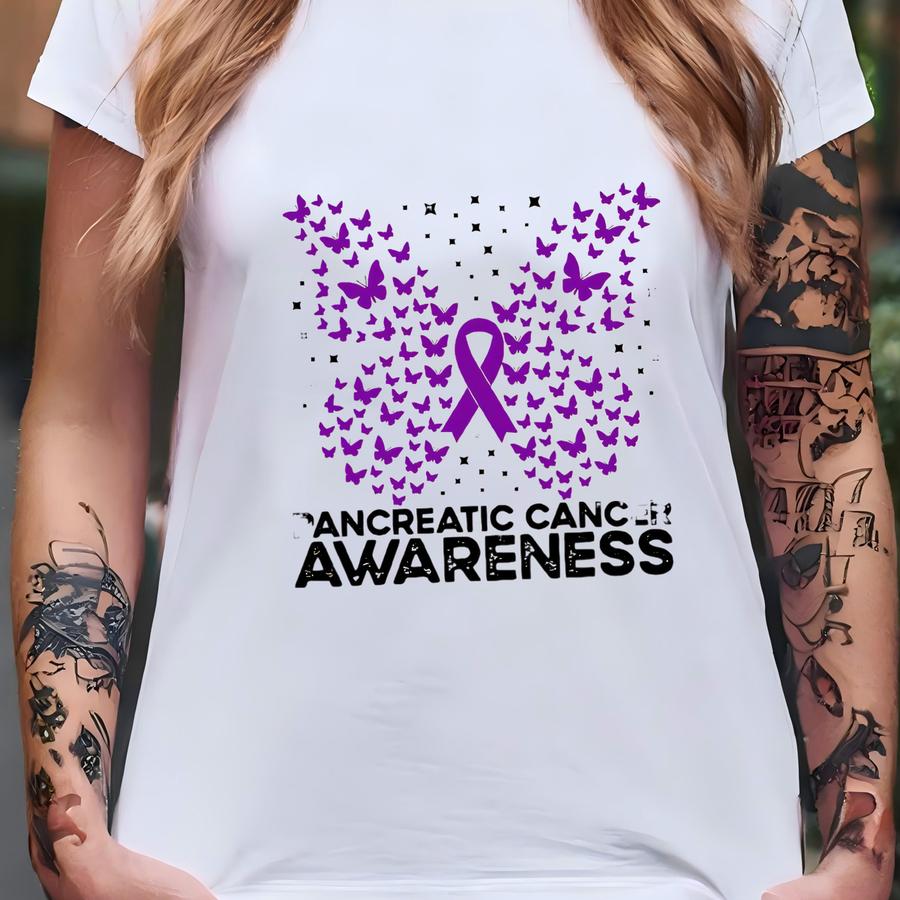 Pancreatic Cancer Awareness Sweatshirt, Pancreatic Cancer Butterfly Sweat,purple Ribbon Sweatshirt,pancreatic Cancer Support,pancreatic Gift T-shirt