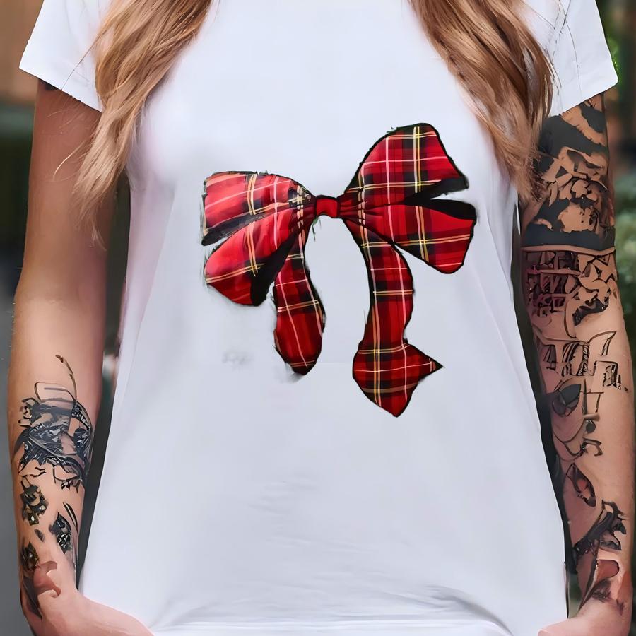 Green Plaid Ribbon Christmas Sweater: Holiday Knit Pullover T-shirt