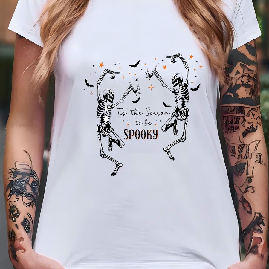 Dancing Skeleton Pumpkin Shirt, Tis The Season Spooky Tshirt, Skeleton Fall Halloween Tee, Funny Skeleton Tee, Cute Fall Shirt T-shirt