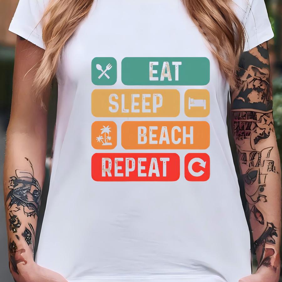 Eat Sp Beach Repeat Shirt, Funny Beach Lover Shirt, Al Life Routine Shirt, Relaxed Summer Vibes Shirt, Ocean Addict Vacation Shirt T-shirt