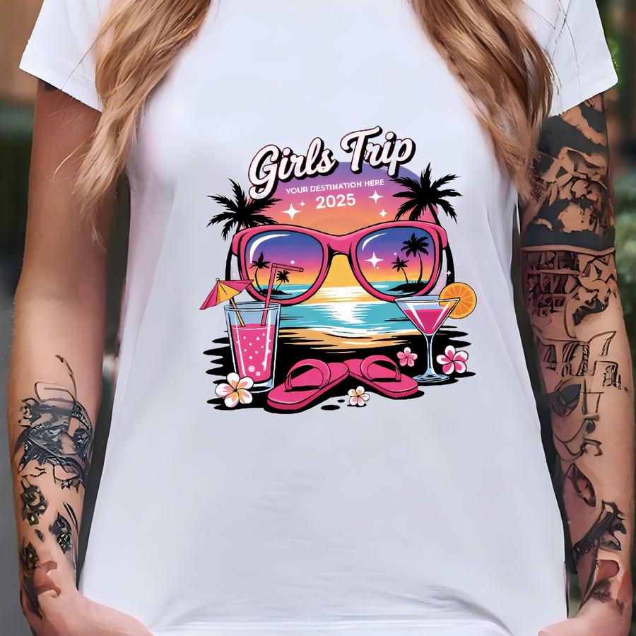 Girls Trip Your Destination Here 2025 Shirt, Custom Vacation Matching Tee, Girls Travel Shirt, Summer Getaway Shirt, Travel Crew Shirt T-shirt