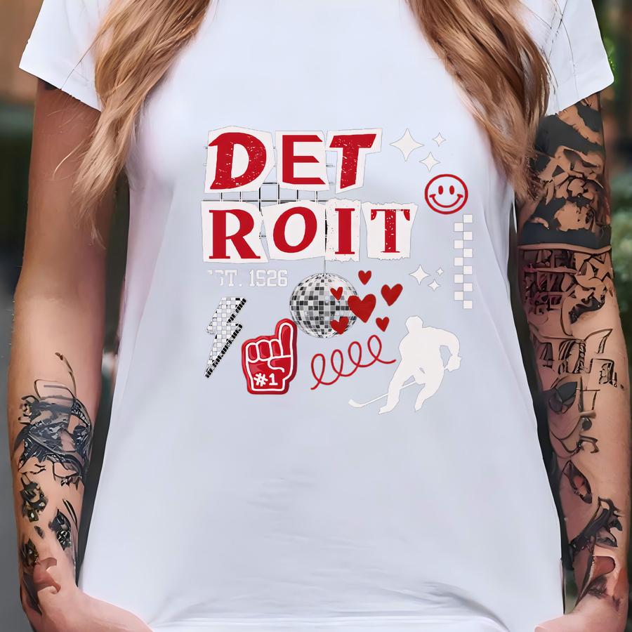 Detroit Hockey Sweatshirt, Hockey Oversized Sweatshirt, Michigan Sports, Detroit, Hockey Mom Retro Preppy Game Day Shirt T-shirt