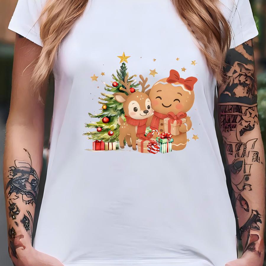 Personalized Gingerbread Reindeer Girls Christmas Sweatshirt | Girls Holiday Shirt T-shirt