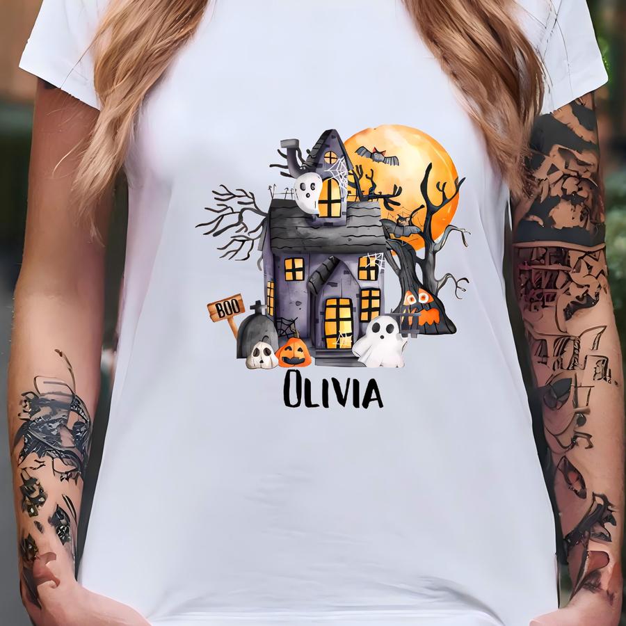 Personalized Haunted House Halloween Sweatshirt: Kids Trick Or Treat Party T-shirt