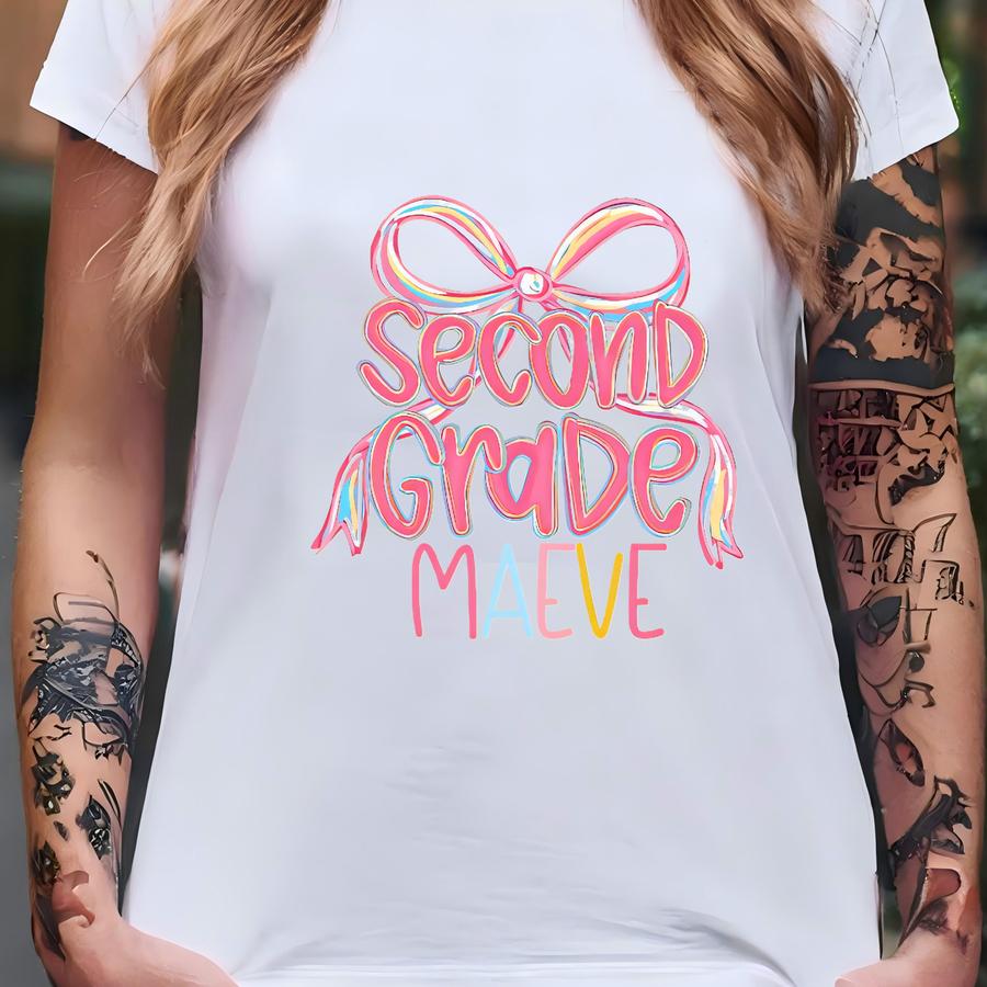 Personalized Second Grade Back To School Shirt: Pastel Bow T-shirt