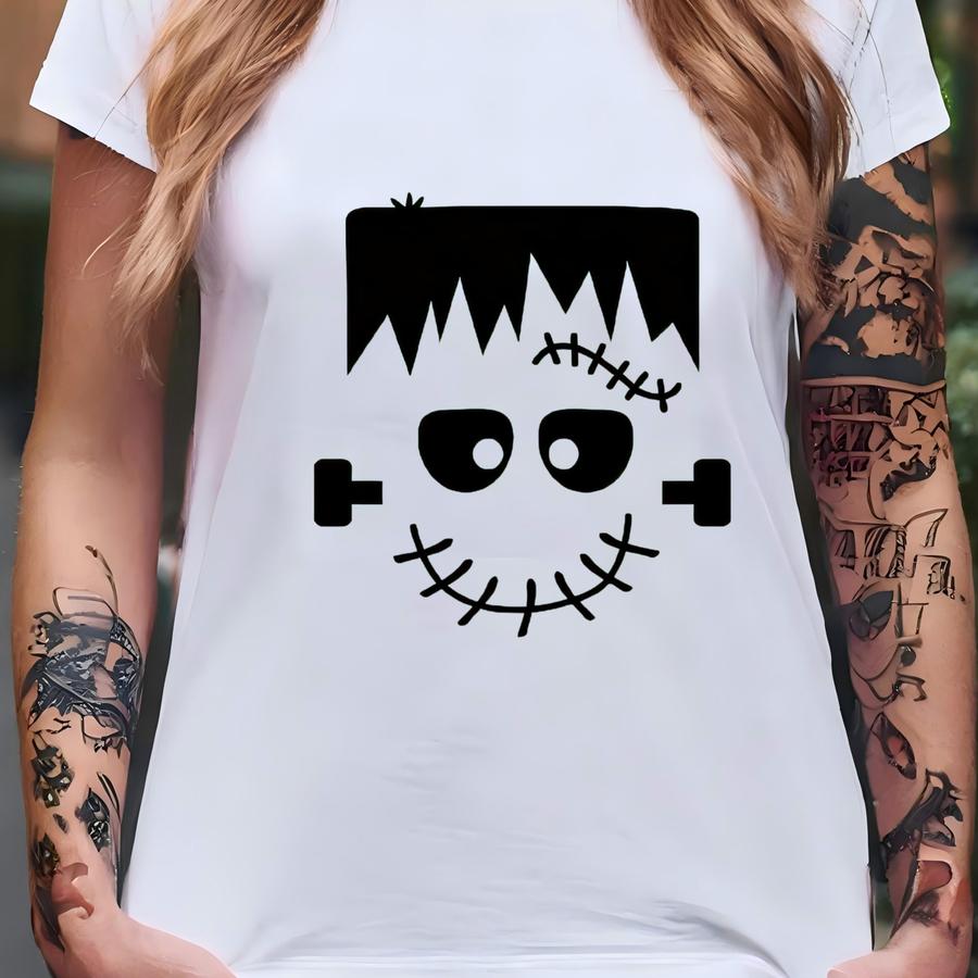 Frankenstein Face Graphic Tee, Boys Halloween Hoodie, Funny Green Monster Shirt - Gl7873 T-shirt