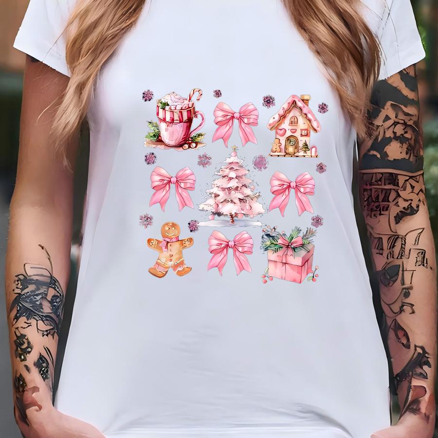 Pink Christmas Sweatshirt Tis The Season Xmas Sweater Cute Girly Holiday Womens Pullover Candy Cane Bow Santa Tee Winter Crewneck T-shirt