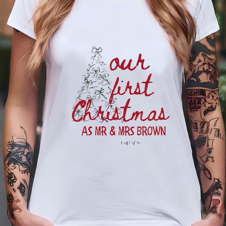 First Christmas As Mr And Mrs Personalized Crewnecks, Merry And Married Sweatshirt, Custom Couples Christmas Shirts Christmas Couple Hoodie T-shirt