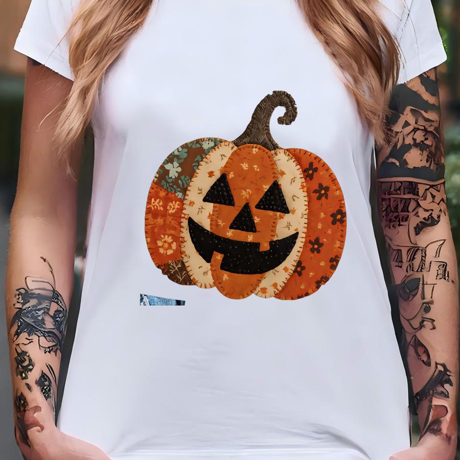 Patchwork Pumpkin Halloween Sweatshirt, Retro Fall Pumpkin Face Shirt, Vintage Spooky Season Crewneck, Cute Autumn Pumpkin Outfit Sweatshirt T-shirt