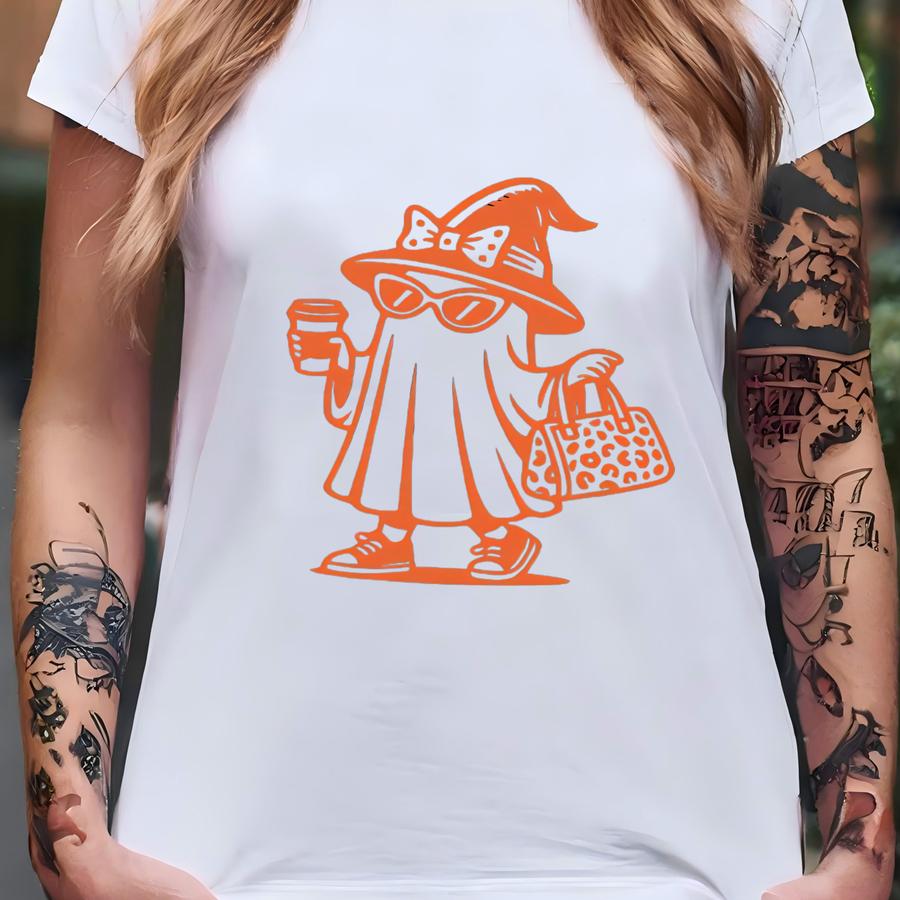 Matching Halloween Couple Sweatshirts, Ghost Cowboy And Witch Coffee Lover His And Hers Halloween Outfit, Spooky Couple Gift Outfit Ideas T-shirt