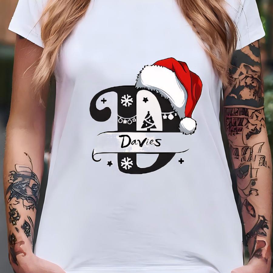 Monogrammed Custom Family Christmas Hoodie Personalized Holiday Shirt, Familia Christmas Name Shirts, Xmas Names Christmas 2025 Family Tees T-shirt