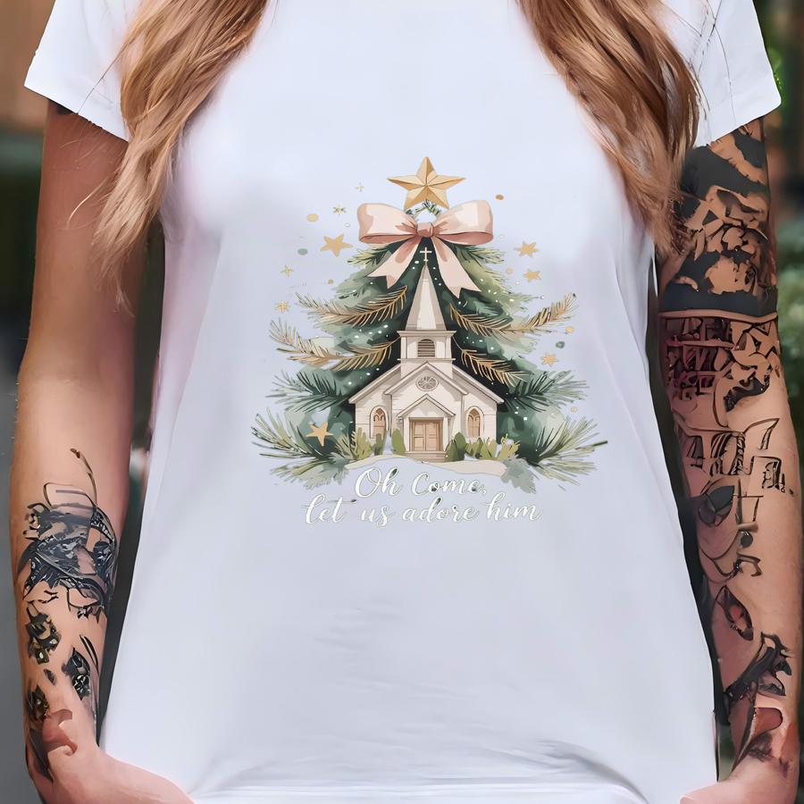 Oh Come Let Us Adore Him Shirt, Religious Christmas Sweatshirt, Christian Christmas Sweater, Christian Christmas Tree, Jesus Nativity Sweat T-shirt
