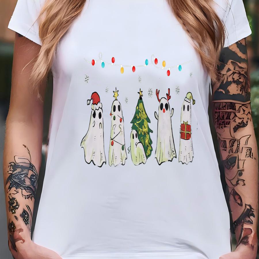 Ghost Christmas Sweatshirt, Merry Christmas Tshirt, Cute Ghost Christmas Tee, Retro Ghost Xmas Sweatshirt, Funny Holiday Clothes Women T-shirt