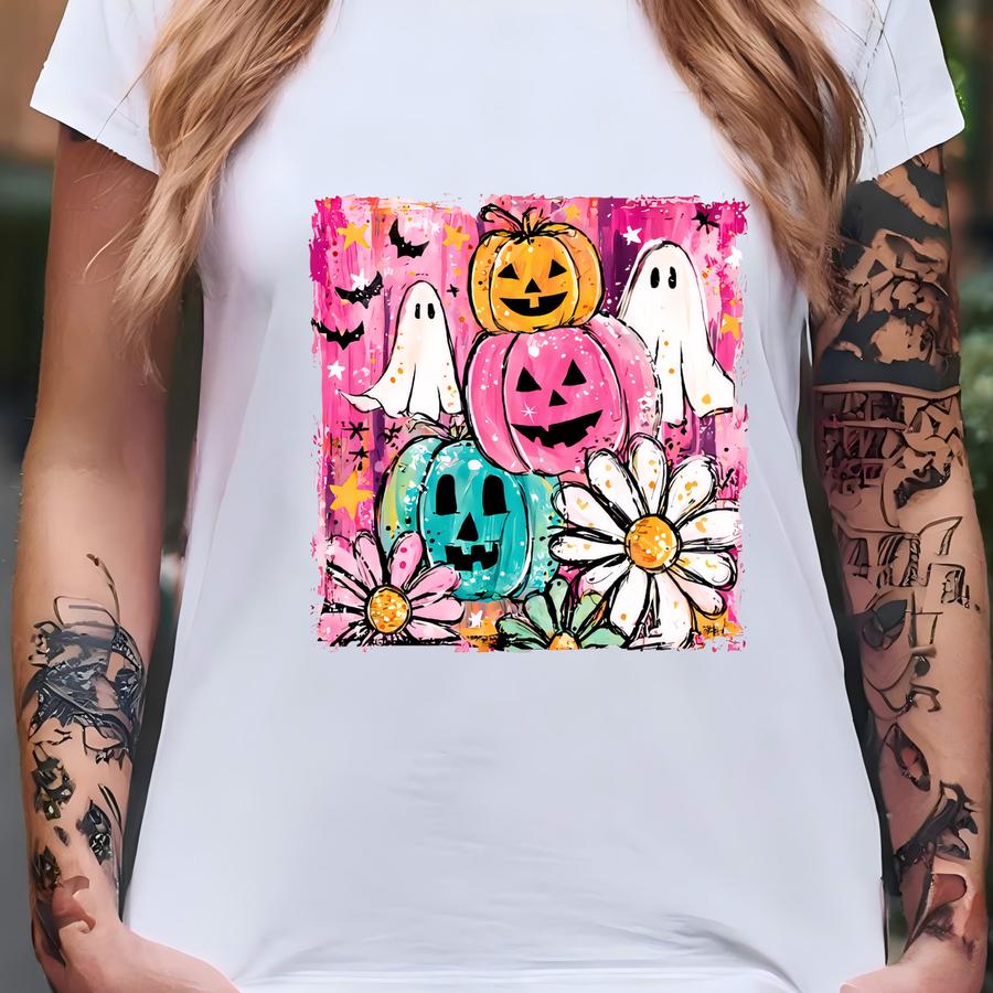 Halloween Pink Ghost Sweatshirt, Boho Pink Pumpkin Sweatshirt, Boho Floral Fall Shirt, Halloween Boho Floral Tee, Spooky Season Shirt T-shirt