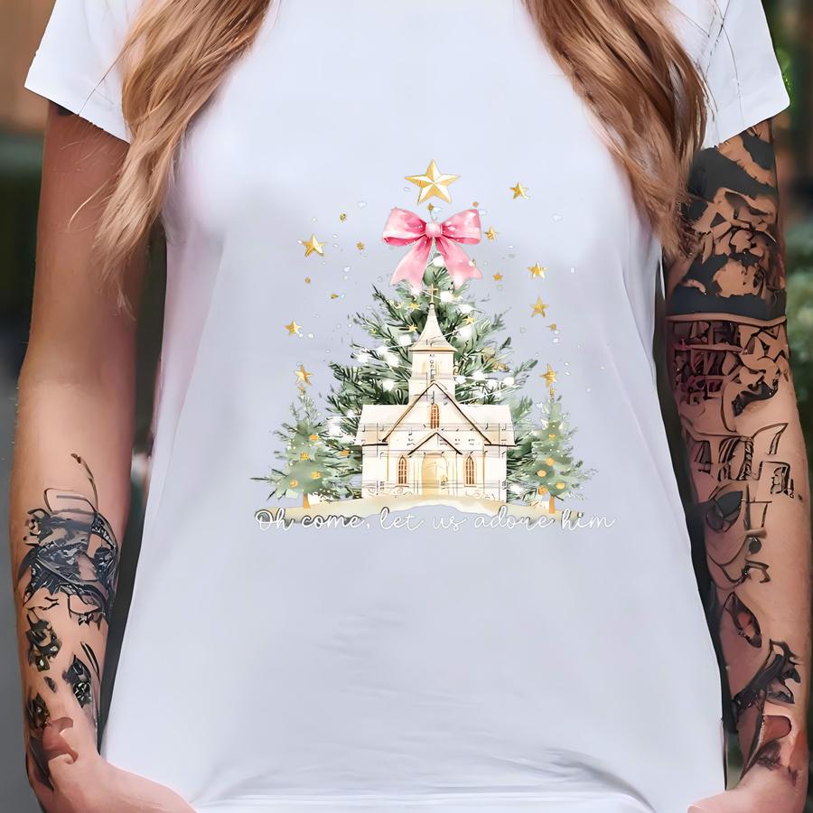 Oh Come Let Us Adore Him Sweatshirt, Jesus Christmas Sweatshirt, Coquette Christmas Tree Hoodie, Christian Christmas Sweatshirt T-shirt
