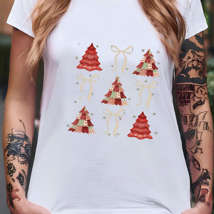 Patchwork Christmas Tree Sweatshirt With Coquette Bows Vintage Cottagecore Holiday Crewneck Retro Cozy Christmas Gift For Her Coquette Shirt T-shirt