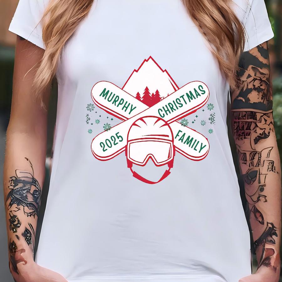 Family Matching Snowboarding Christmas Sweatshirts Retro Ski Lodge Crewnecks Holiday Family Group Snow Outfits Winter Sports Christmas Shirt T-shirt