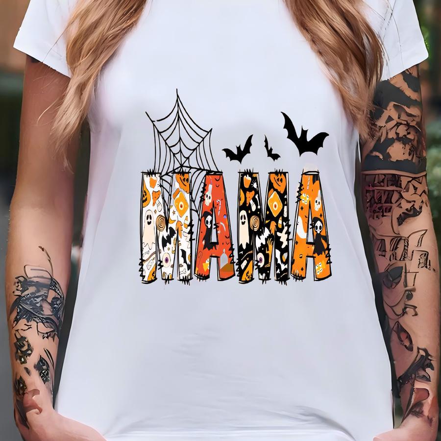 Personalized Halloween Mama Sweatshirt With Kid Name On Sve, Spooky Mama Shirt, Gift For Mom,spooky,halloween Shirt,custom Name Halloween T-shirt