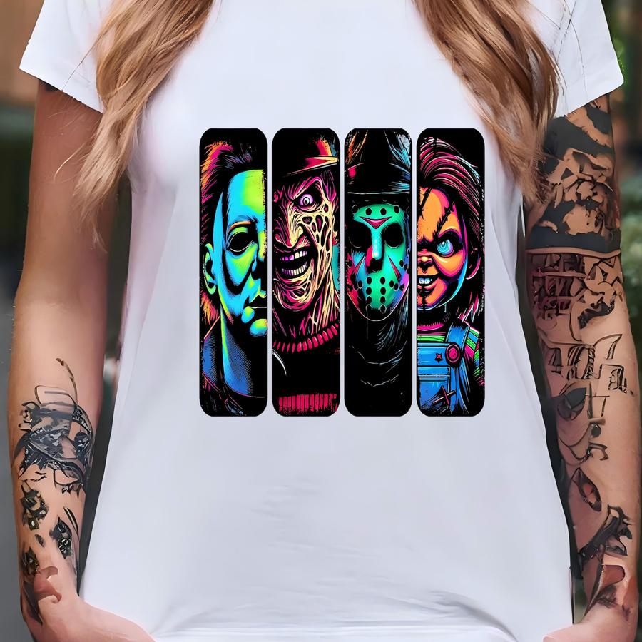 Halloween Horror Characters Dtf Transfer, Bad Boys Halloween Ready To Press, Friends Design, Retro Halloween, Scary Movies Dtf Gang Sheet T-shirt