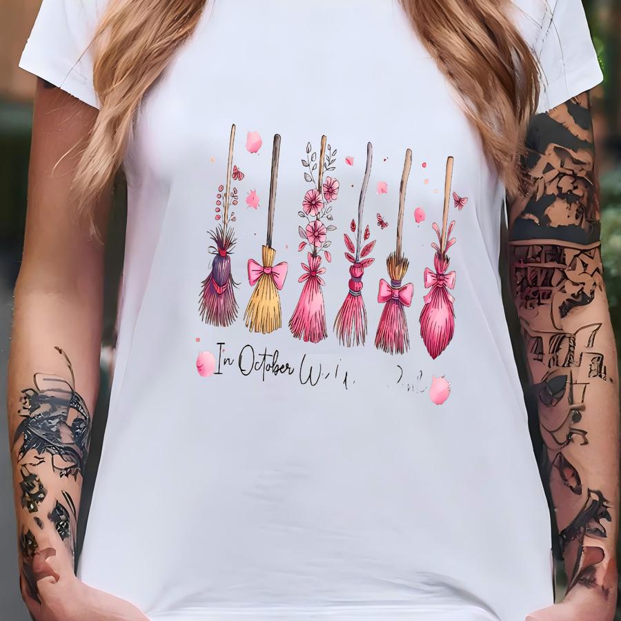 In October We Wear Pink Sweatshirt, Halloween Breast Cancer Awareness Sweatshirt, Halloween Witch Shirt, Witches Pink Month T-shirt