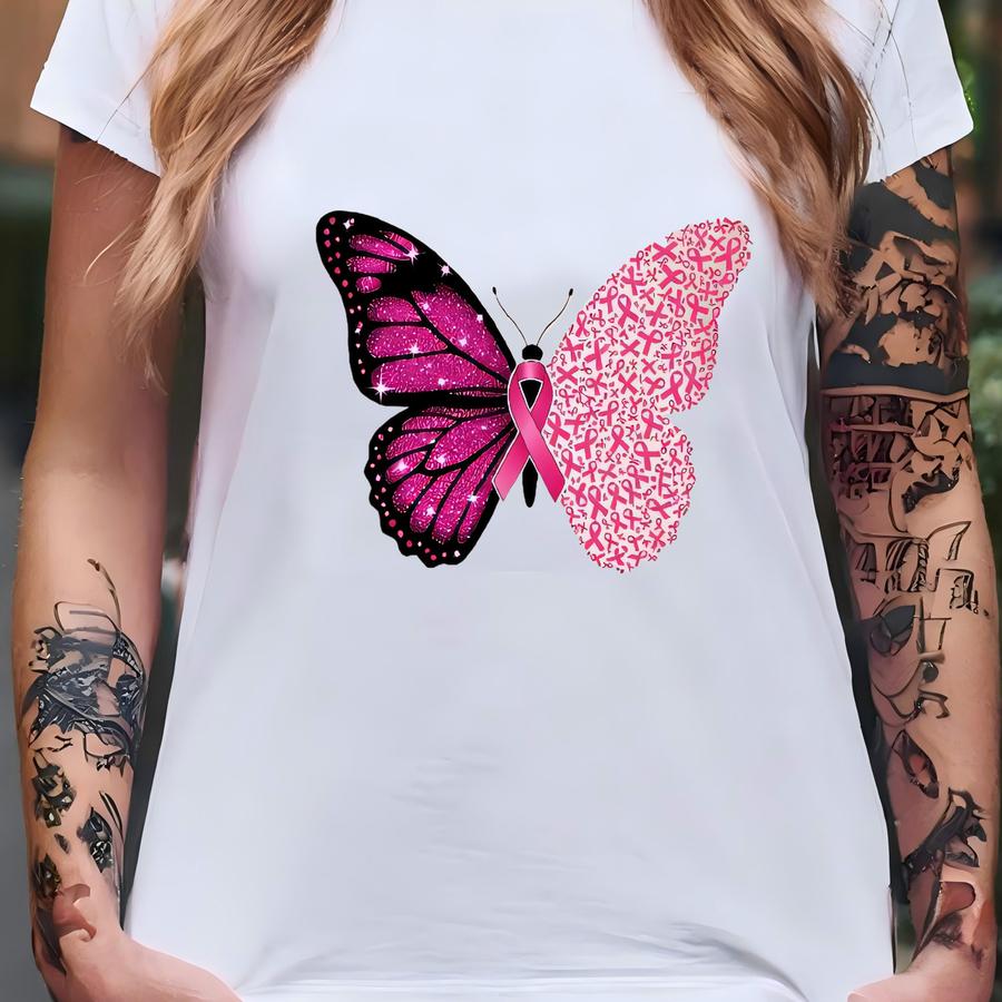 In October We Wear Pink Breast Cancer Shirt, Cancer Awareness Month Support Shirt, Butterfly Ribbon Motivational Gift T-shirt