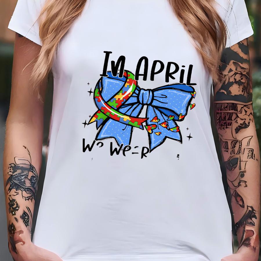 In April We Wear Blue Shirt, Autism Awareness Coquette Shirt, Autism Bow Shirt, Autism Mama Shirt, Special Education, Neurodiversity Tee T-shirt