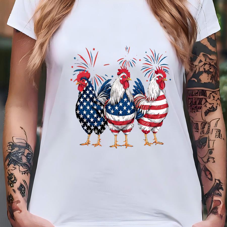 Patriotic Rooster Shirt, Funny 4th Of July Chicken Hoodie, Farm Animal Usa Flag Tee, Country Style Gift, Red White Blue Graphic Top T-shirt
