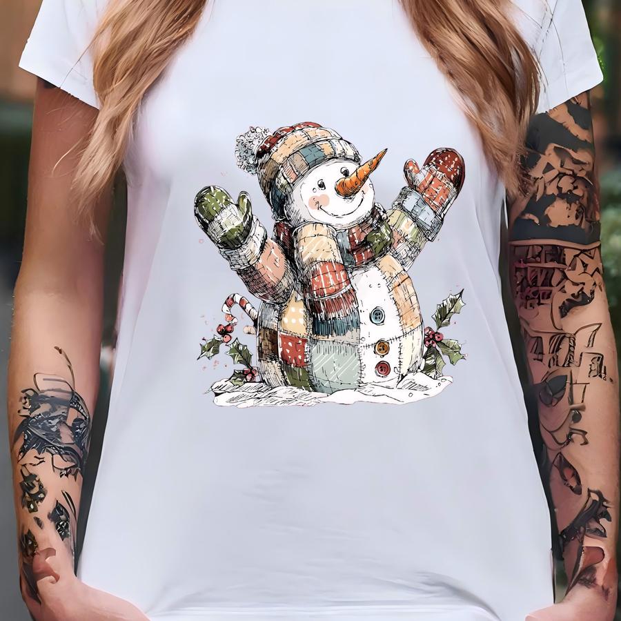 Patchwork Snowman Shirt, Patchwork Christmas Tee, Winter Season Shirt, Cute Holiday Shirt, Preppy Girl Christmas Shirt, Xmas Vacation Shirt T-shirt