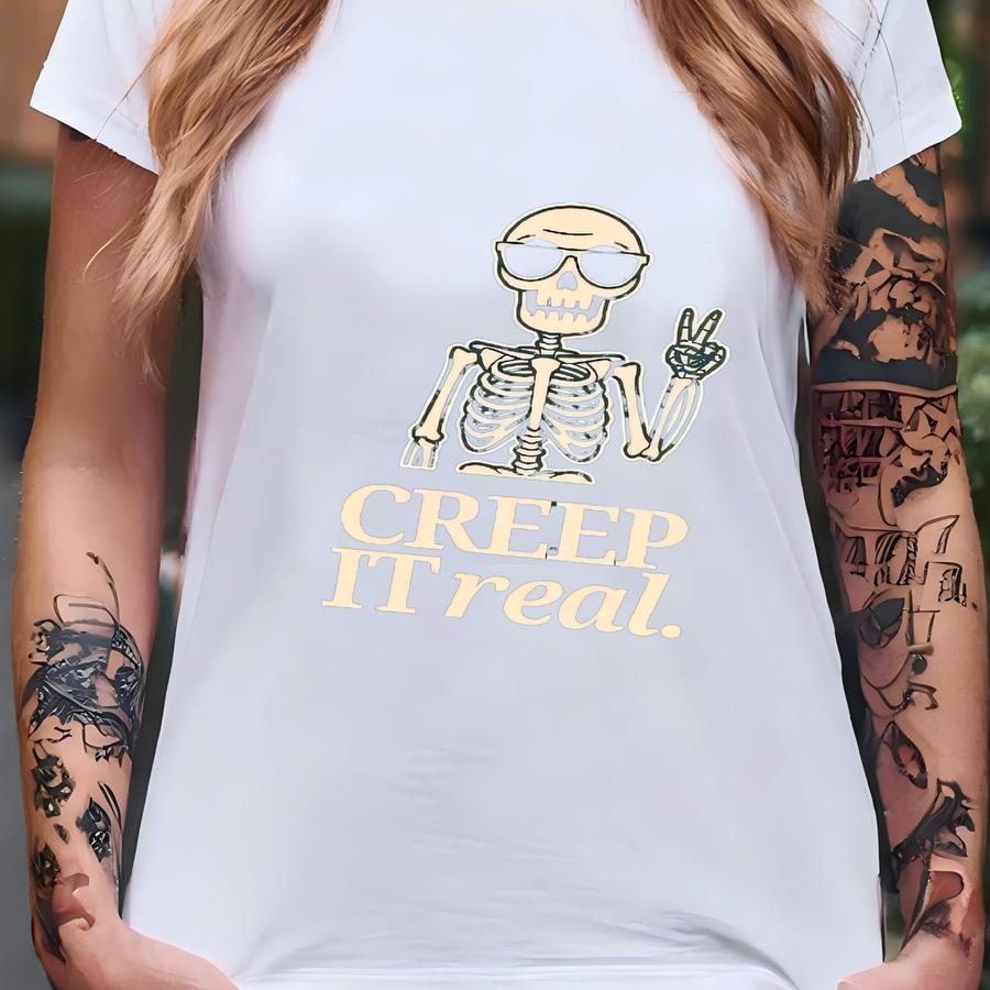 Halloween Creep It Real Shirt, Funny Skeleton Hoodie, Tee, Halloween Crewneck, Retro Halloween, Skeleton Tshirt,creep It Tee T-shirt