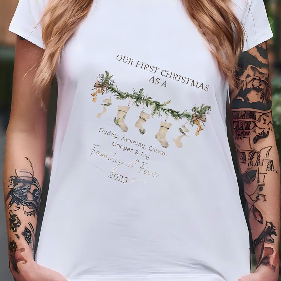 Modern Personalized Family Of Three Soft Neutral Christmas Ornament 2025, Family Of 4, Custom New Family Ornament, Baby's First Christmas T-shirt